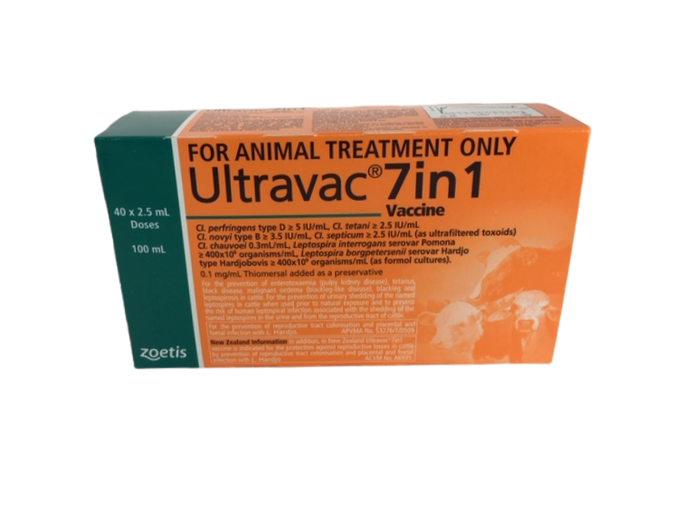 Ultravac 7in1 is used to prevent the common types of leptospirosis which affect cattle (and can also be transmitted from cattle to people) as well as prevent the major life threatening clostridial diseases that commonly can occur in cattle.